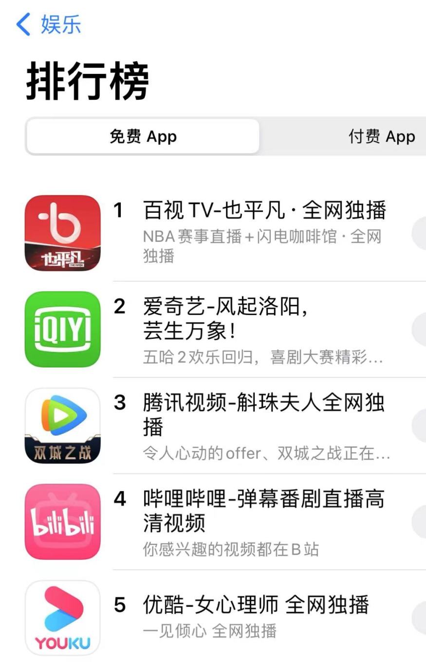 12月7日,东方卫视、百视TV联播大剧《也平凡》强势接档《两个人的世界》之际,百视TV APP在苹果移动应用市场娱乐榜首次登顶,超越爱奇艺、腾讯视频、优酷等头部视频网站,并排在全网所有免费应用的第十三名。作为上海广播电视台、上海文化广播影视集团有限公司(SMG)和东方明珠新媒体股份有限公司(东方明珠新媒体)旗下核心流媒体平台,百视TV近期加力整合SMG、东方明珠新媒体优势资源,对包括《东方风云榜》棒!音乐盛典、《两个人的世界》等优质综艺、影视剧进行全网独播,优质内容回归自有平台,迸发出强劲的引流吸力。此次排名登顶,不仅反映百视TV APP近期爆发式增长以及远超同期产品的增长率,更体现了SMG、东方明珠新媒体深度整合优质资源、积极推进媒体融合的有力实践和成效。