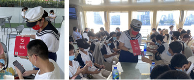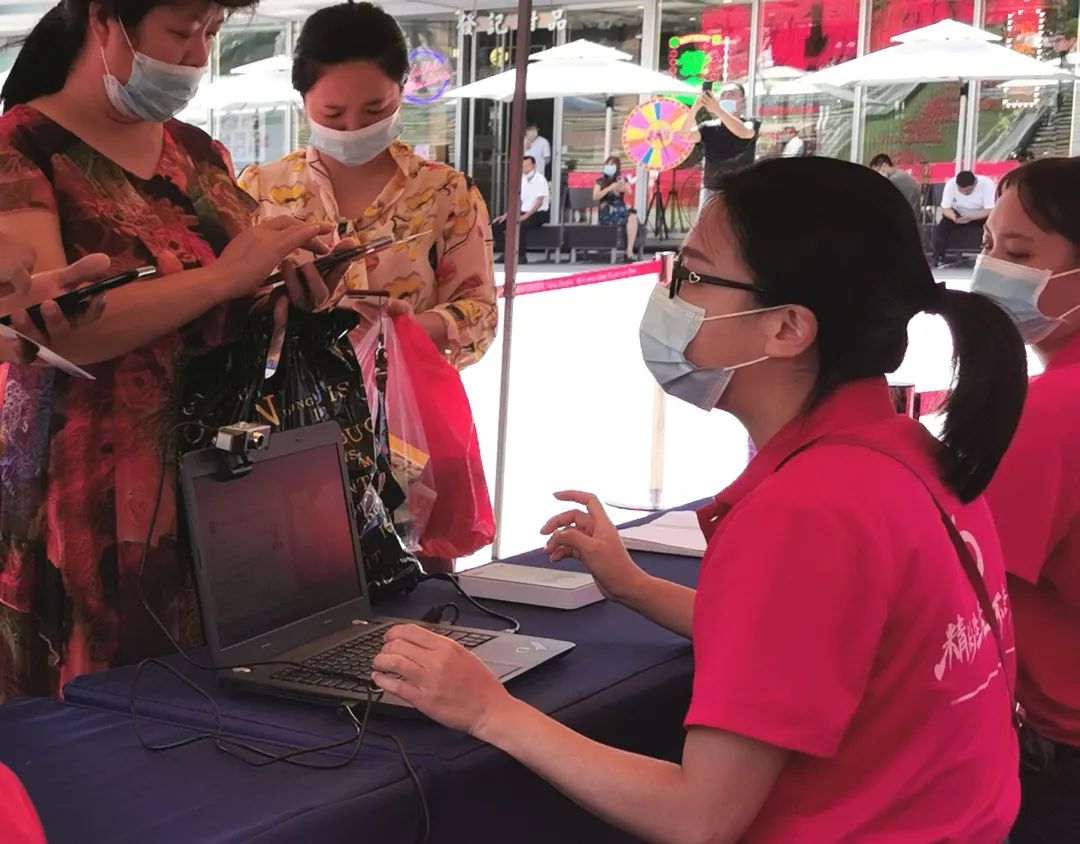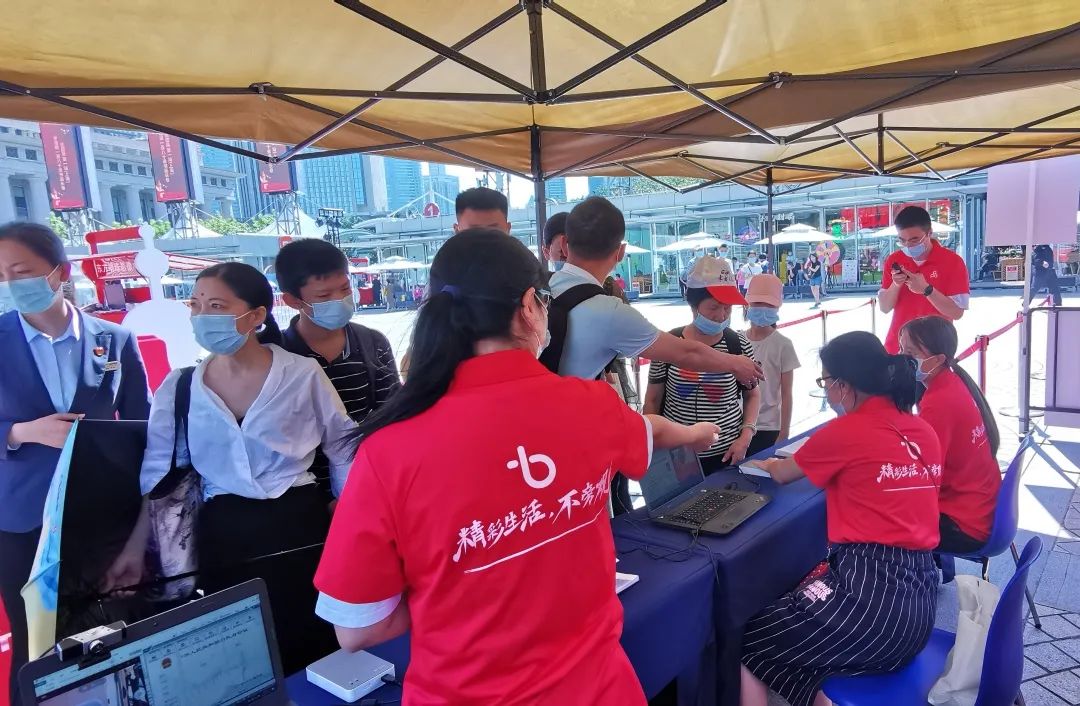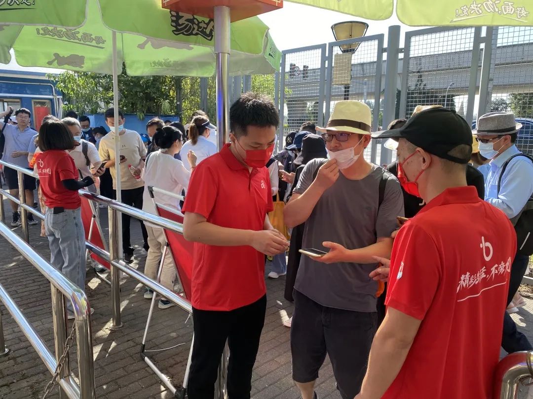 塔外的志愿者承担了入塔游客的身份验证工作,引导游客下载“百视TV”APP并注册会员。尽管连日来上海持续高温,面对大量的游客,OPG志愿者们始终耐心疏导,现场排队区秩序井然,各项志愿工作高效运行。