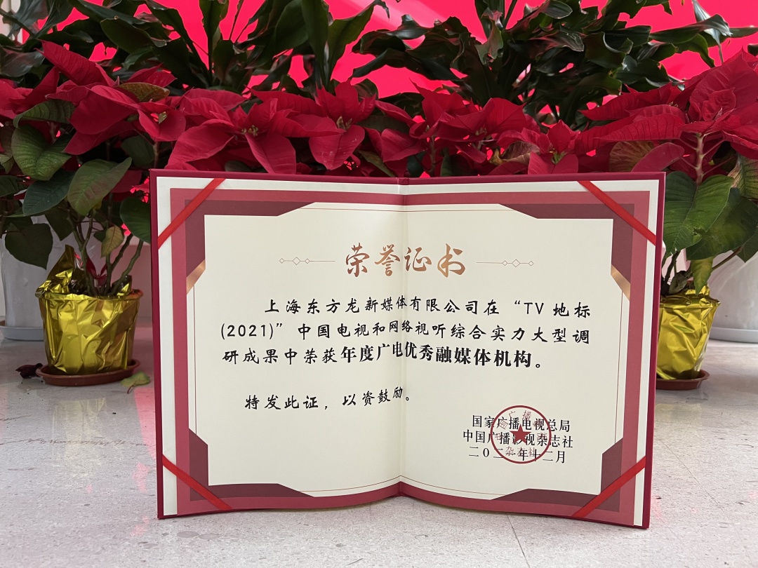 12月26日,“TV地标”(2021)中国电视和网络视听综合实力大型调研榜单出炉,东方明珠新媒体股份有限公司(简称“东方明珠新媒体”)旗下上海东方龙新媒体有限公司(简称“东方龙”)凭借在践行媒体融合转型、打造流媒体视频平台、探索“内容电商”商业模式等方面的创新努力和突出成效,荣获“年度广电优秀融媒体机构”,受到广电主管部门、业界和学界的充分肯定!