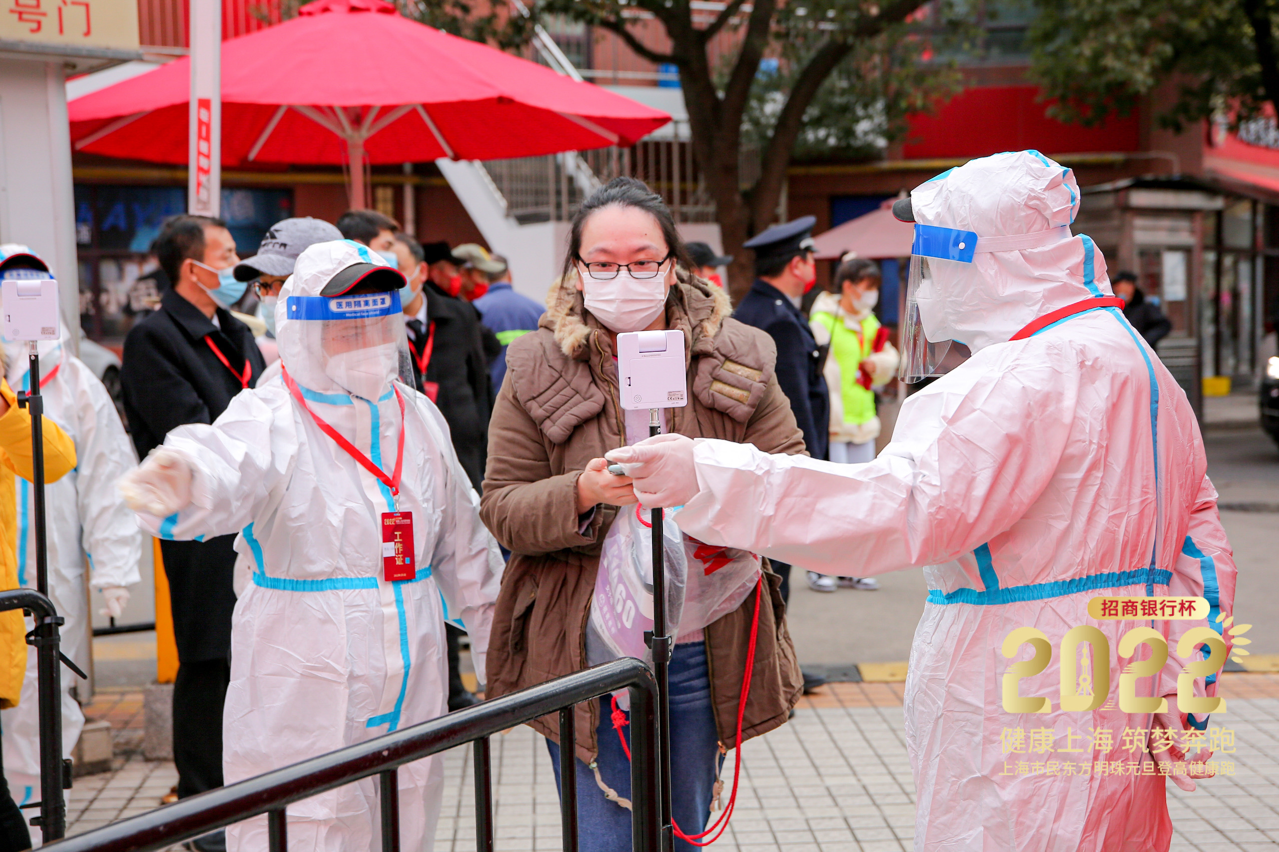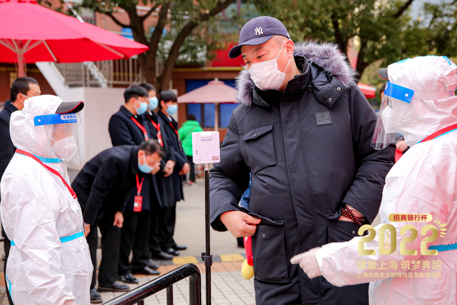 1月1日一早,东方明珠广播电视塔在活动入场处设置防疫点,对所有参与人员逐一进行体温检测和健康码核验,全面做好防疫和安保工作,确保赛事活动圆满举行。比赛全程,工作人员始终做好相关防疫工作,时刻确保活动安全顺利进行。