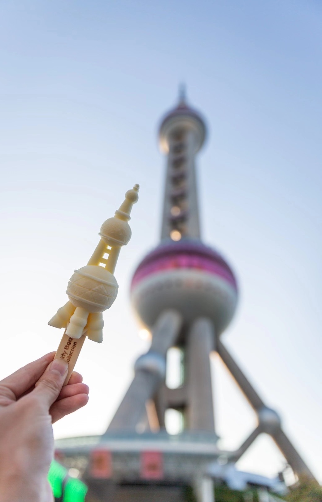 而要提起当下频频占领社交媒体C位露脸的“网红”,非明珠塔雪糕莫属。这是东方明珠电视塔与国内知名IP泰迪珍藏合作的一款冷饮,将东方明珠电视塔造型进行萌化设计,更符合当下年轻人的互动喜好。同时在生产中采取了先进的3D打印技术,细节设计采用了东方明珠电视塔玻璃幕墙上的精致花纹,令人一见就爱不释手,引得众多年轻人自发在小红书、抖音、朋友圈等各平台上分享传播。
