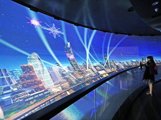 东方明珠电视塔还积极运用新技术,让经典地标的文娱体验不断焕发新活力。0米大厅的《聚·上海》世界级穹顶投影秀,采用360度30K超高清巨幕影像技术,2200平方的投射面积,上演着一场场惊险刺激、神奇浪漫的视觉之旅;95米的高空VR过山车,是中国首个、上海最高的室内VR过山车,逼真震撼视觉冲击迅速火爆申城;在351米太空舱,游客乘坐时光机与太空舱接轨,浸入式领略星球的神奇魅力。