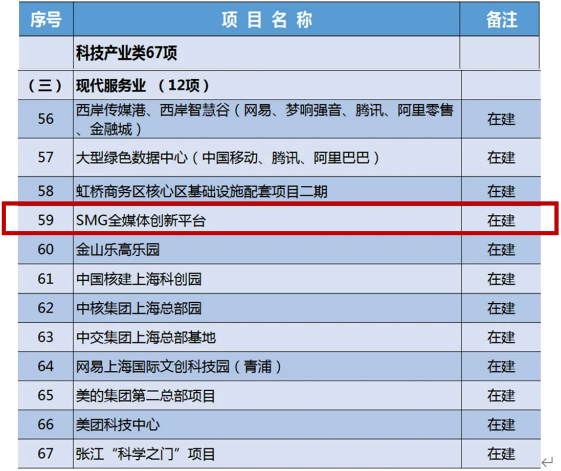 1月26日,上海市发展改革委公布2022年上海市重大建设项目清单,安排正式项目共173项,涉及投资额2000亿元以上。其中,由东方明珠新媒体股份有限公司和上海临港共同打造的SMG全媒体创新平台(东方智媒城)被列为科技产业类现代服务业重大建设项目,获市级高度肯定!