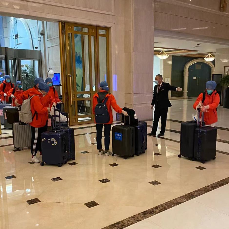 4月3日下午6点,满载着146位“最美逆行者”的大巴抵达国会中心,迎接他们的是酒店团队精心准备的温暖欢迎。根据医疗队要求,酒店迅速对场地设施进行了调整和再布置。当晚8点,146份热气腾腾的餐盒,承载着酒店团队的心意和问候,准时送达每一位医疗队成员的房间门口。