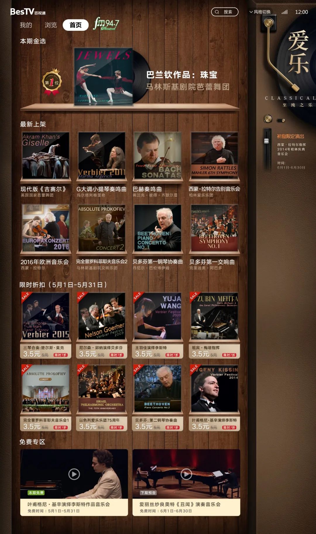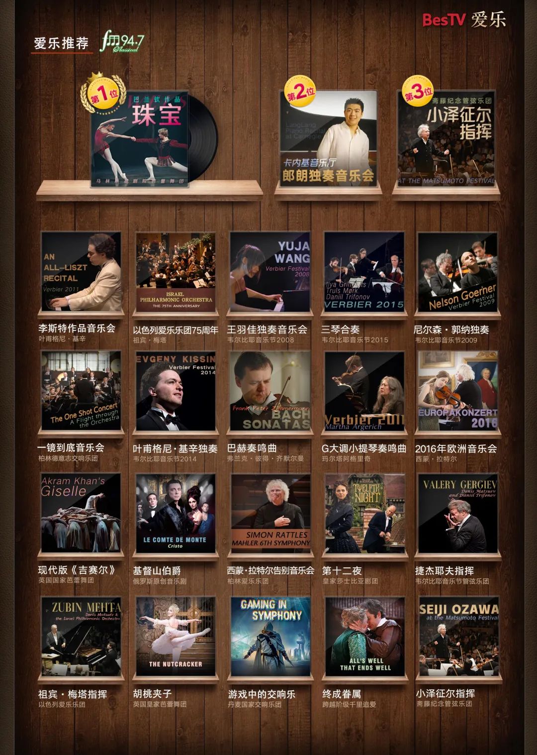 从行业顶级水准的韦尔比耶音乐节系列到拥有140年历史的世界顶尖乐团柏林爱乐乐团系列;从钢琴家独奏到音乐大师合奏的殿堂级演出;从经久不衰的芭蕾舞剧《胡桃夹子》到享誉百年的莎士比亚戏剧《第十二夜》等海外优质艺术现场影像,BesTV爱乐为用户带来跨越时空的世界级演出现场,在无垠乐海中感受古典音乐的魅力。