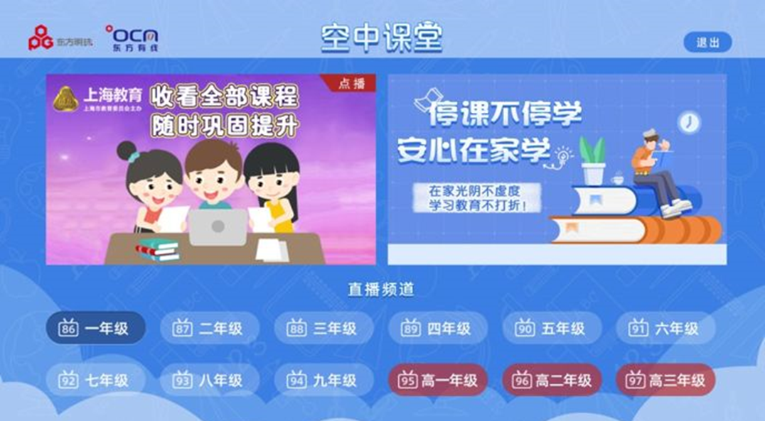 上海虹口广灵路小学学生家长戴先生表示对“空中课堂”效果很满意,“完全匹配上海教学内容,用点播可以实现课程进度无缝衔接,而且授课老师都是名师,有线电视大屏画质也很不错,课程效果很好!”