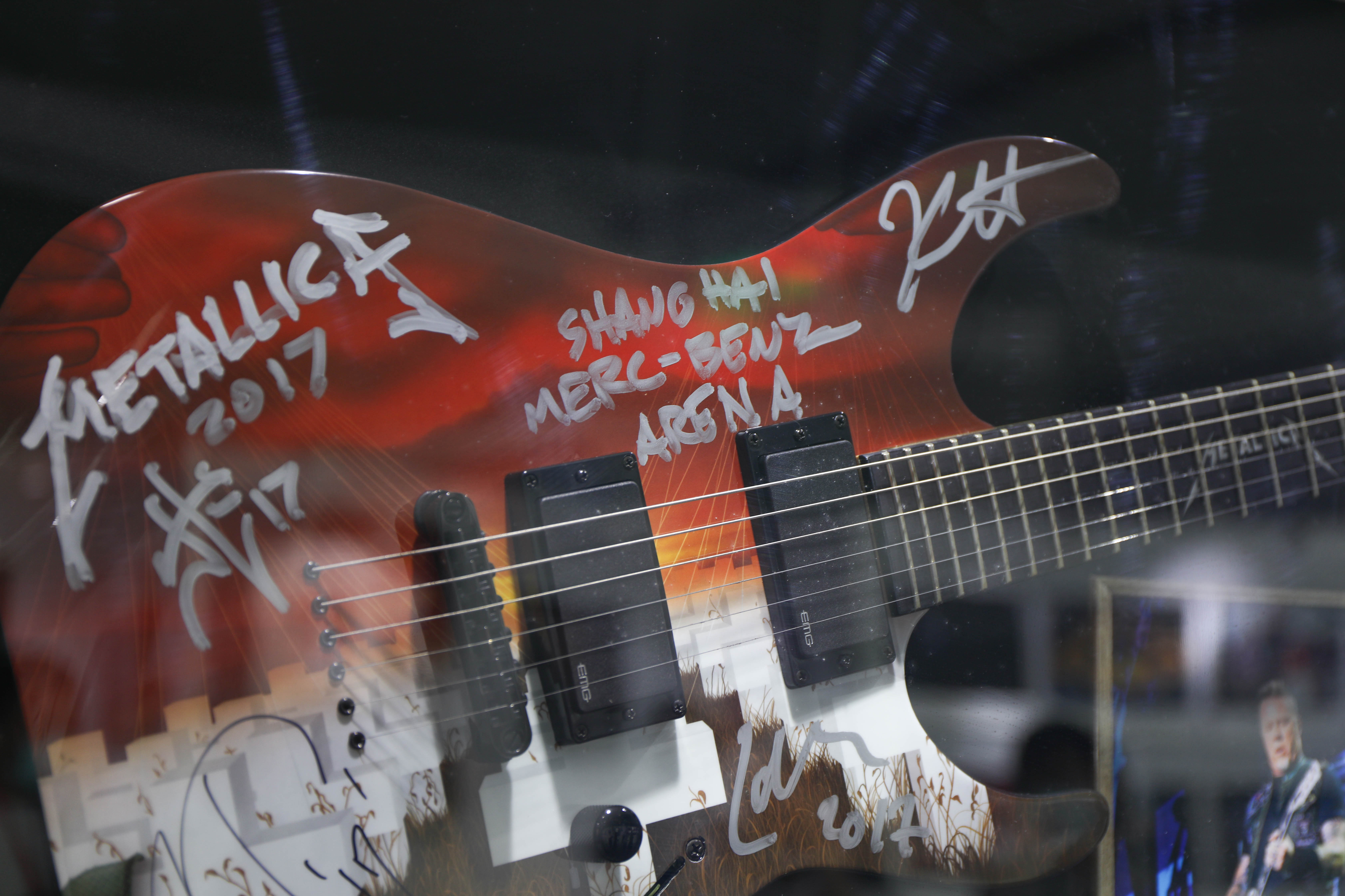 海外区的展品中,集结了来自Taylor Swift、Ed Sheeran、Sam Smith、Bruno Mars等欧美音乐的流行先驱、格莱美奖获得者们的近20张签名海报,也成为众多海外艺人的中国首秀的见证。此外,集齐了Metallica所有乐队成员签名的LTD“Master of Puppets”全球限量400把的吉他、百年NHL(北美职业冰球联赛)首场中国赛签名球衣、中国格斗女战神张伟丽的签名拳套等,也是展览中不可不看的亮点。