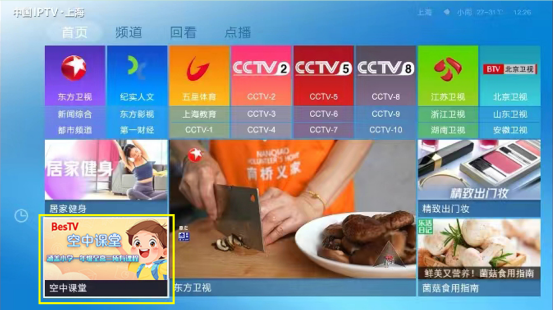 为了让广大师生了解“空中课堂”全新服务方式的收看路径,“空中课堂”12个直播频道自9月1日起至频道停播之日止将播放标板收看指南。