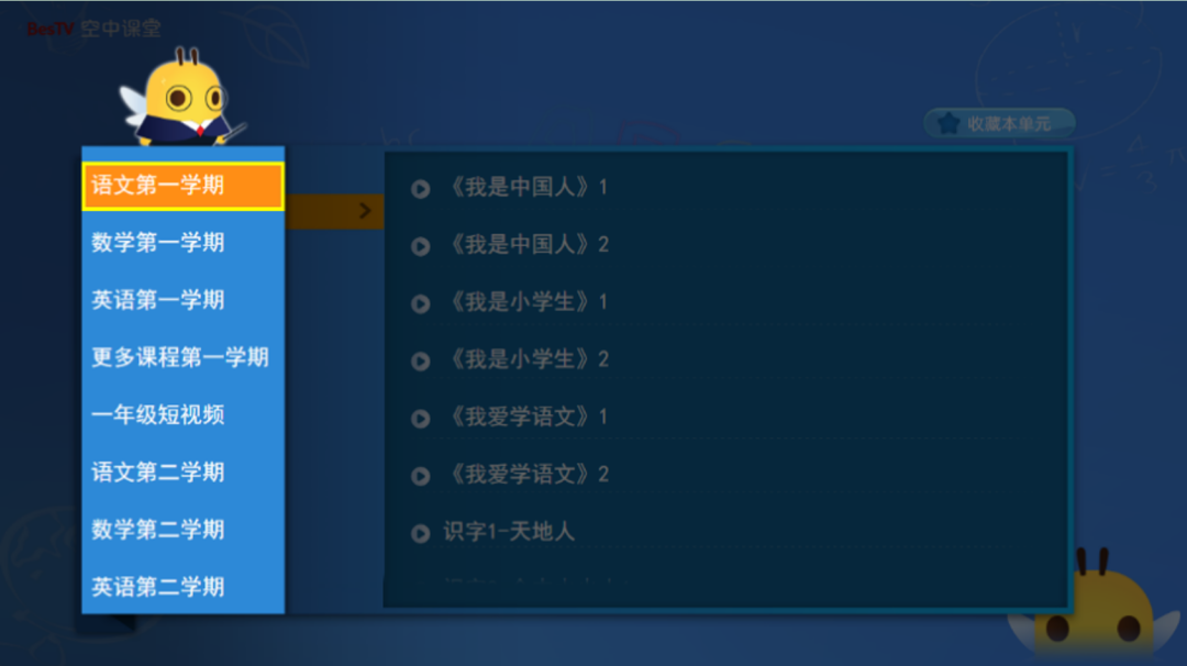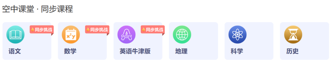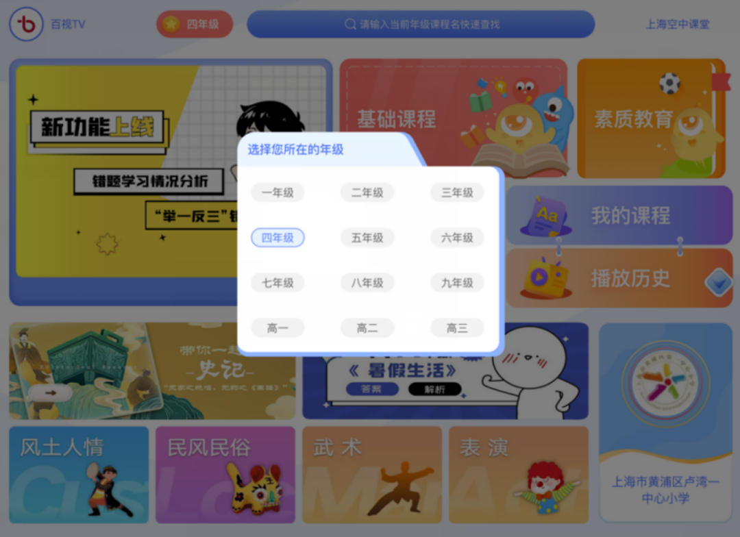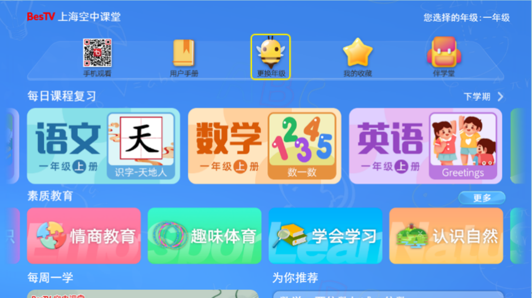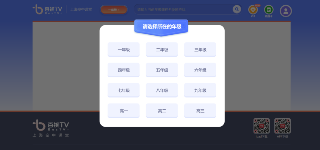 首次进入“空中课堂”,选择学生目前所在年级后,进入相应年级首页。
