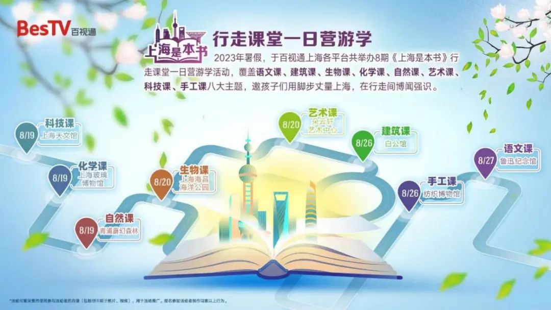 百视通“上海是本书”行走课堂活动联合上海电信、上海移动、上海联通IPTV及东方有线四大平台,8月起面向上海800万家庭大屏用户展开线上招募。