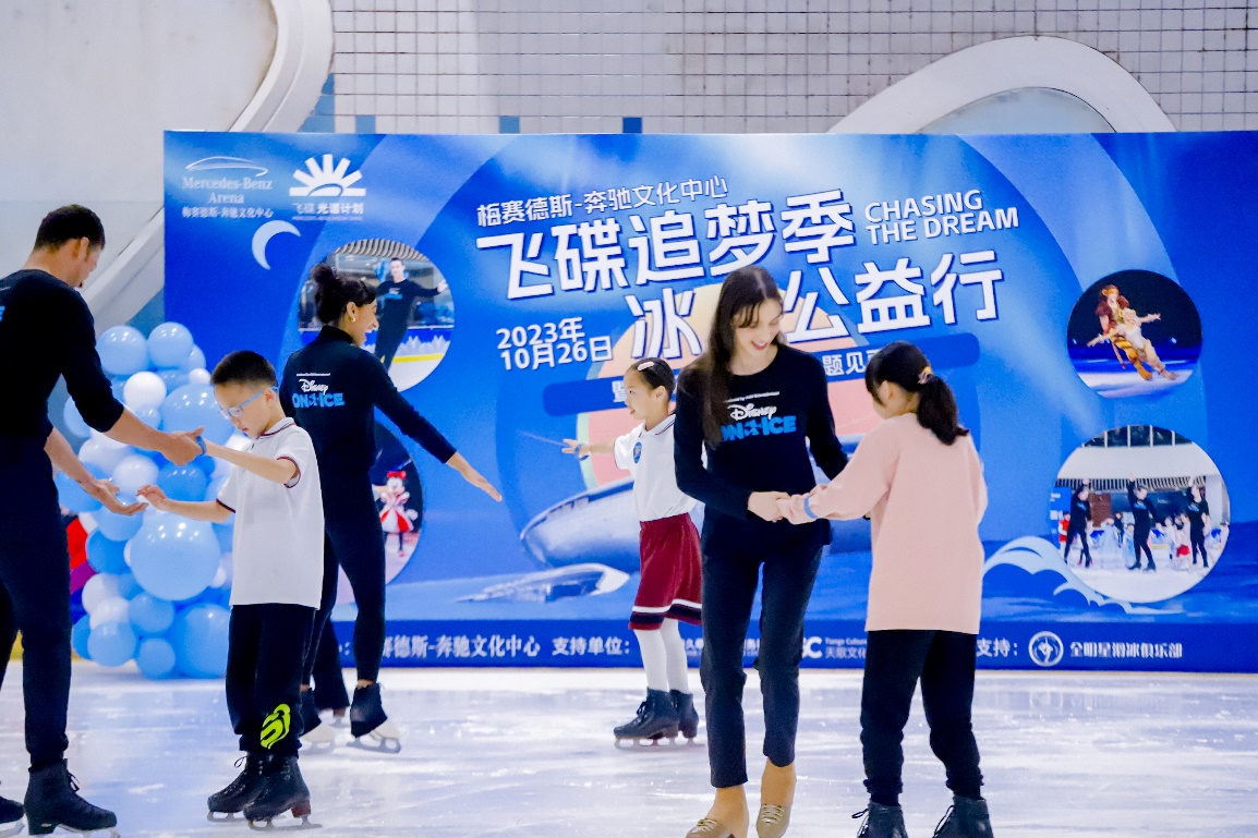 十月,梅赛德斯-奔驰文化中心(简称:梅奔中心)携手上海久牵志愿服务社及“冰上迪士尼”演出主办方发起“飞碟追梦季”关爱行动,为来沪务工人员子女开启一场冰上逐梦之旅。