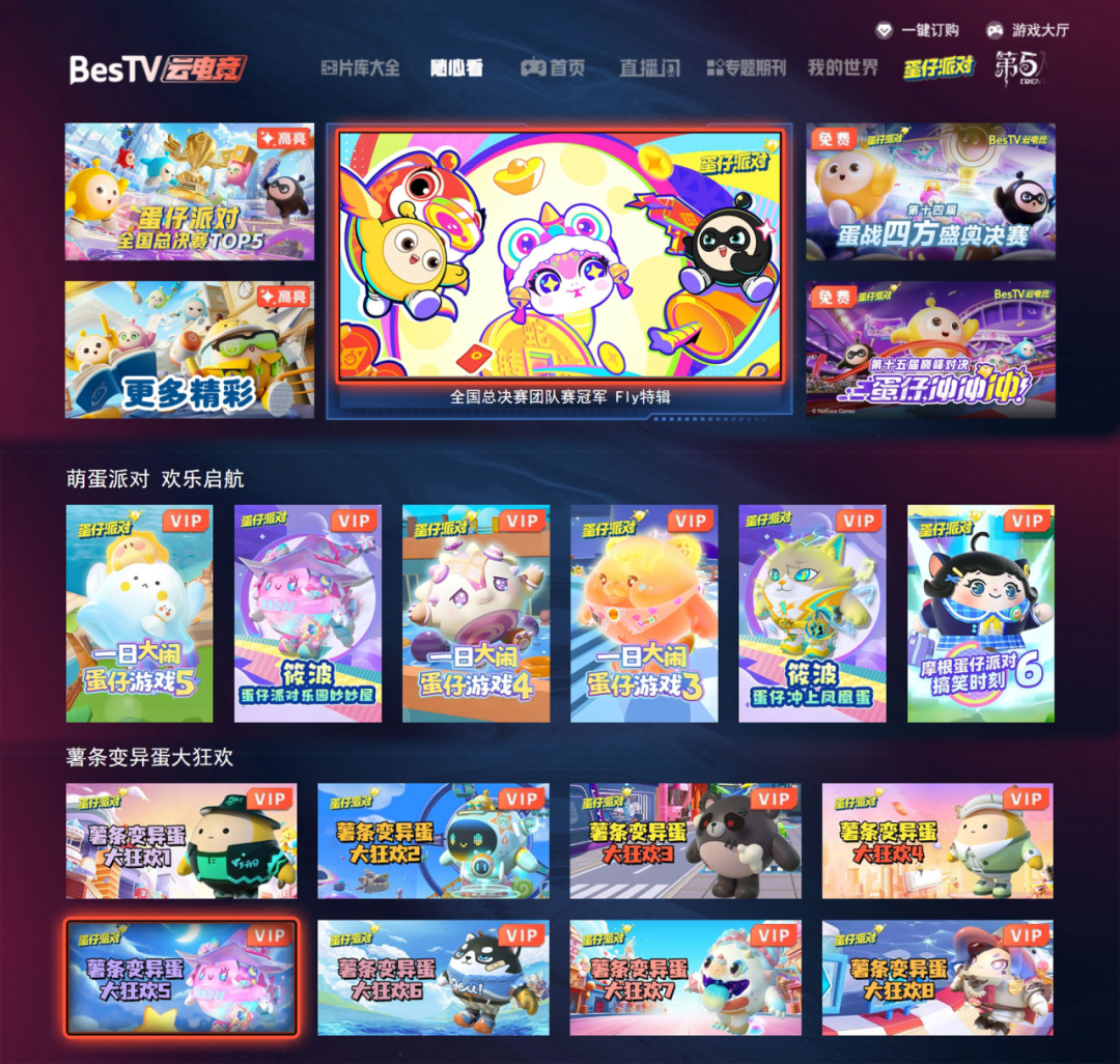 百视通云游戏推出《我的世界》《蛋仔派对》新春专区;主题策划“新春集结 超燃战场!”则汇集《三角洲行动》《和平精英》等热门游戏。