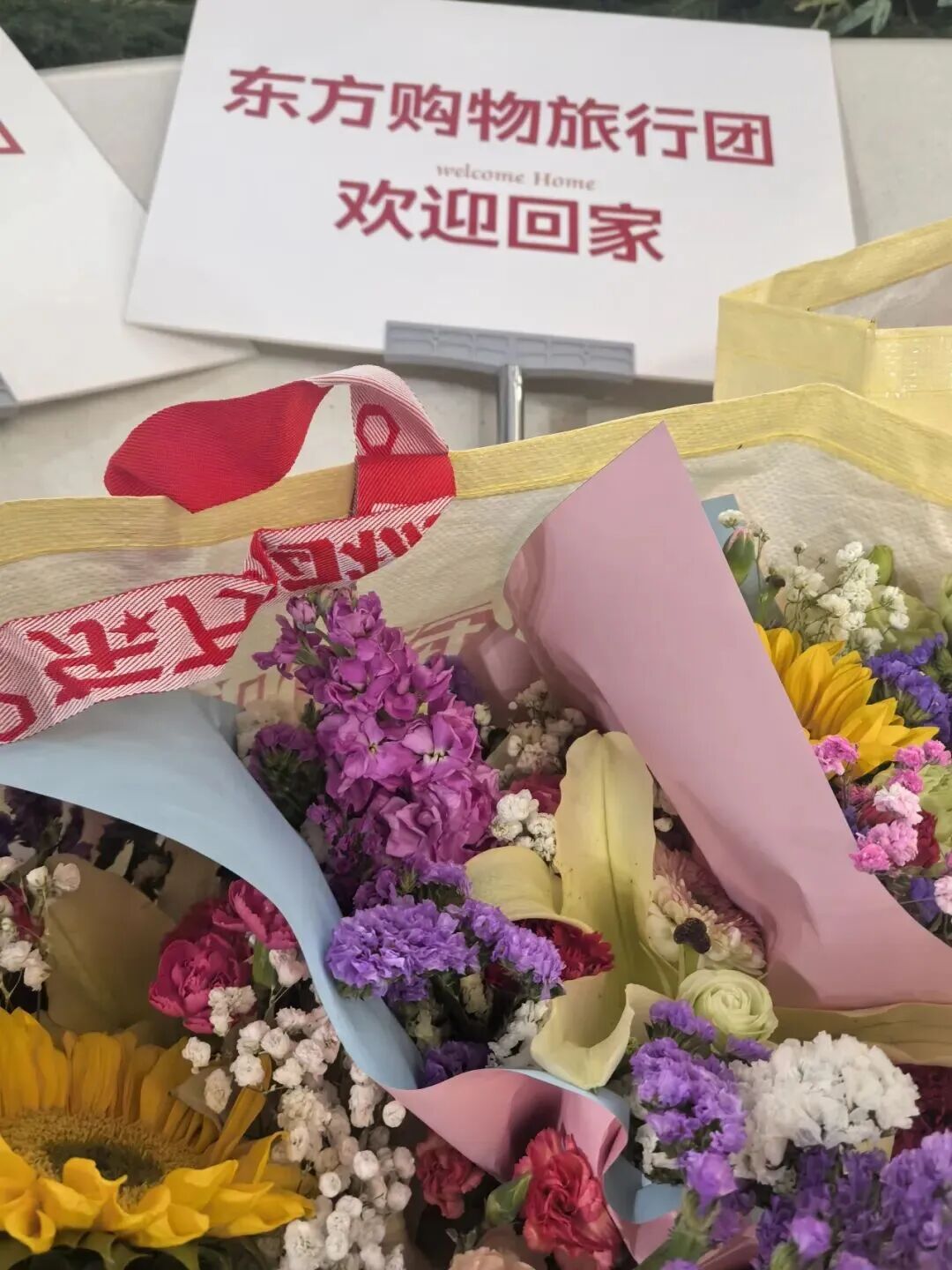 北京时间3月9日凌晨0:19和0:54,两架载有东方购物旅行团游客的航班先后平稳降落在上海浦东国际机场。当游客们推着行李走出到达口时,等候多时的东方购物工作人员迎上前去,为他们献上鲜花,一句暖心的“欢迎回家”,让旅途的疲惫化作归家的安心。